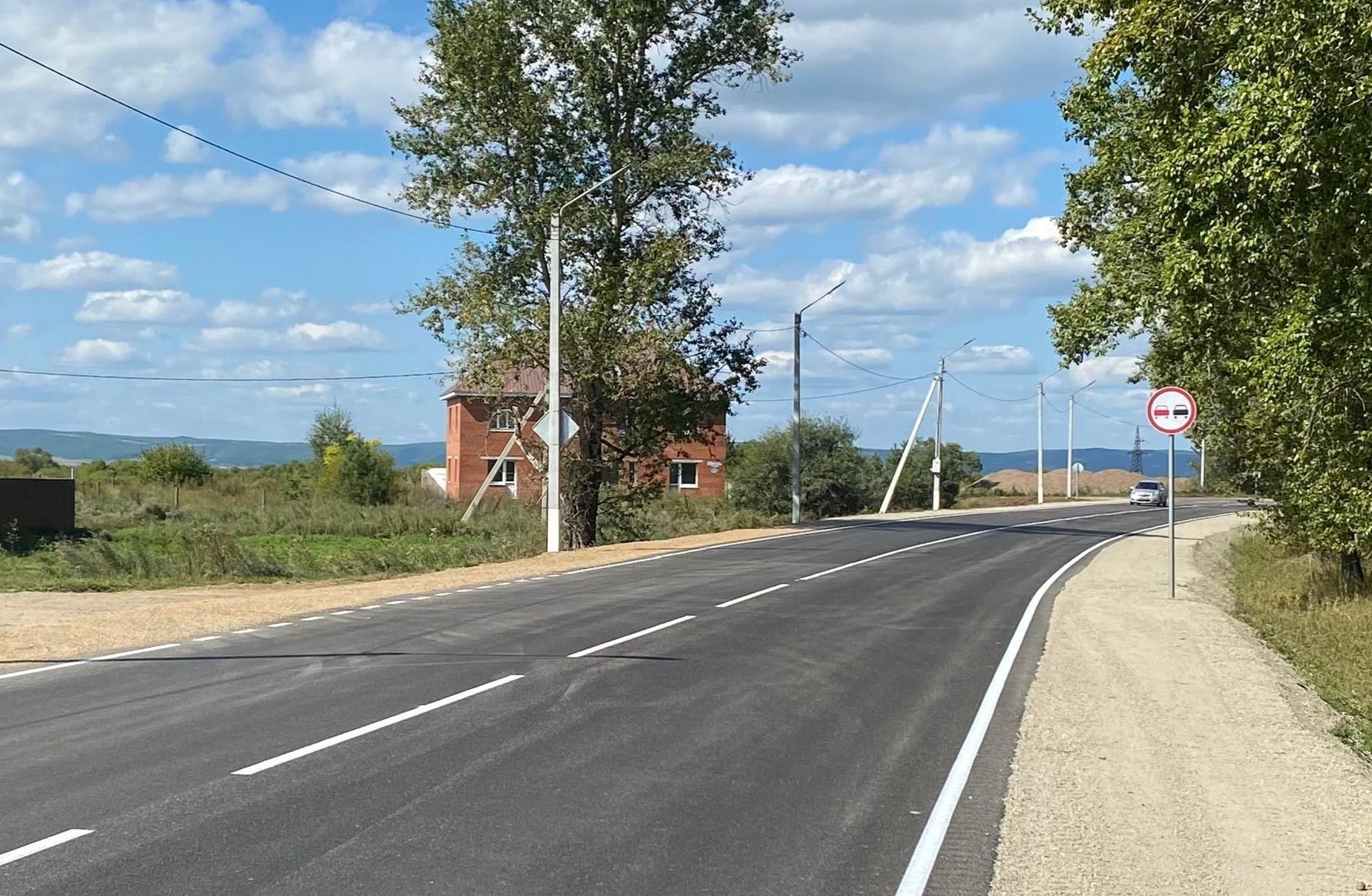 В процессе ремонта специалисты выполнили ремонт водопропускной трубы, восстановили основание дорожной одежды способом холодной регенерации, провели устройство двух слоев покрытия из горячих асфальтобетонных смесей, укрепили обочины щебеночно-песчаной смесью.