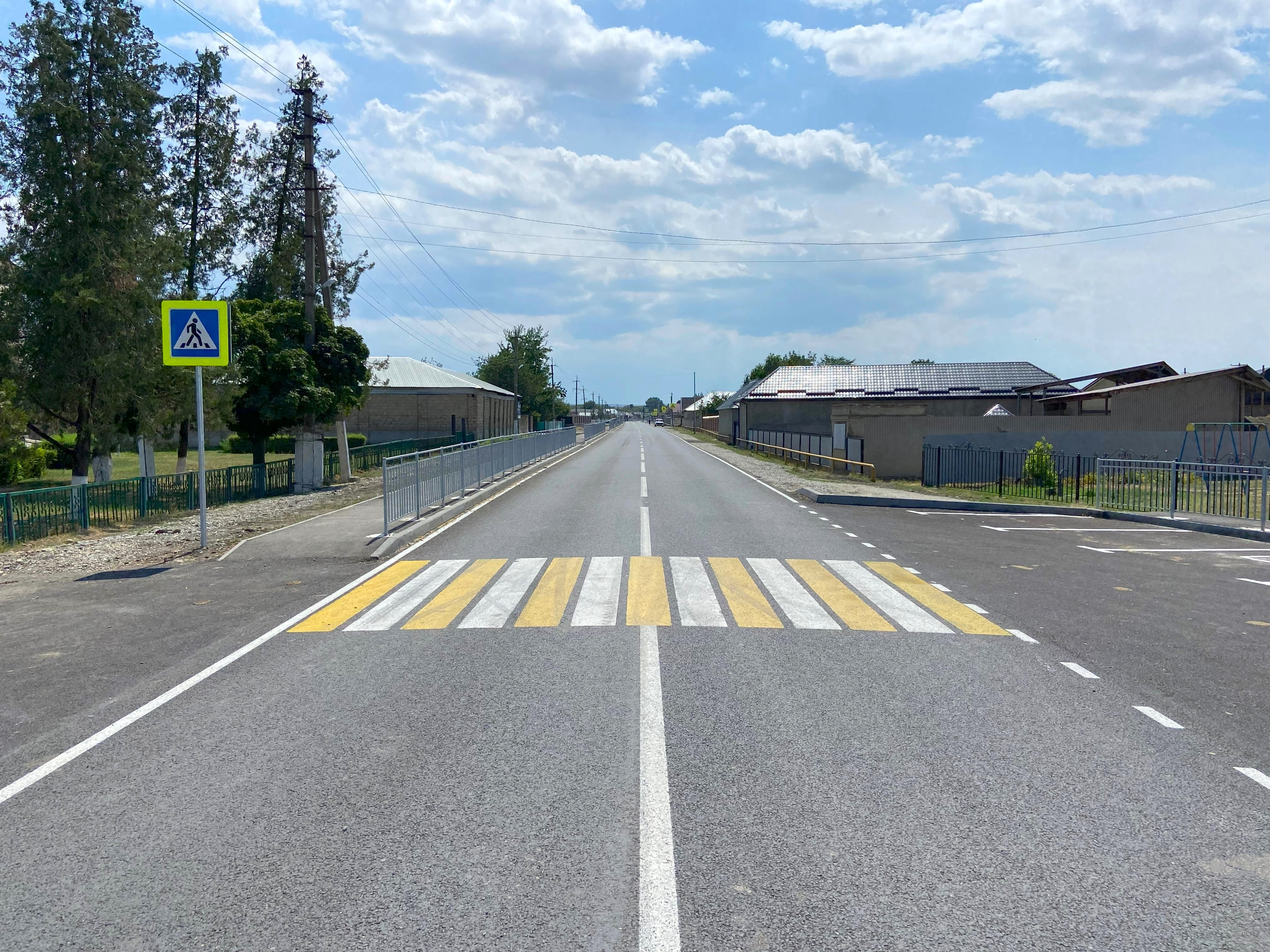 Для обеспечения безопасности были установлены искусственные неровности, перильное ограждение, светофоры и знаки. Нанесена горизонтальная разметка, устроены тротуарные дорожки для пешеходов, а также парковочные места и остановочный комплекс возле социально значимых объектов.